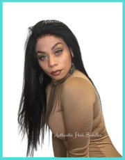 Authentic Kinky Straight Hair (Yaki) Full Lace Wig is all lace and 100% Remy Hair. This wig comes in natural hair colors from off black/darkest brown to a natural warm brown, which can be custom colored and cut to the desired length. Authentic kinky texture wig comes in 3 different textures to choose from. This full lace wig comes with a complete total lace base with no stretch that is custom, however. stretch lace in the middle can be provided. The entire lace base is crafted to give a more realistic top and sides which can be styled in many fashionable looks. The hairline is customized to provide a more realistic appearance.
