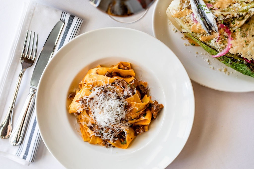 Tomato, sugo finto, baby spinach, pizzaiolo sauce, grilled lemon, salsa verde