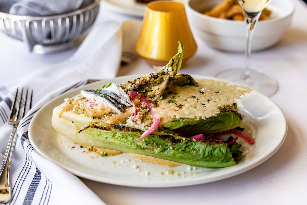 Lightly charred, homemade caesar, pickled red onion, boquerones