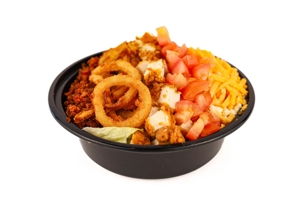 Romaine lettuce with bacon, tomato, mixed cheese crispy fried onions, and ranch.
