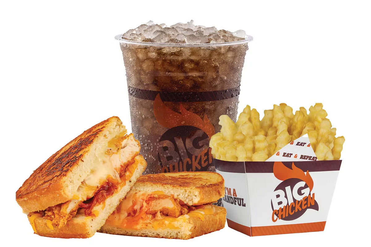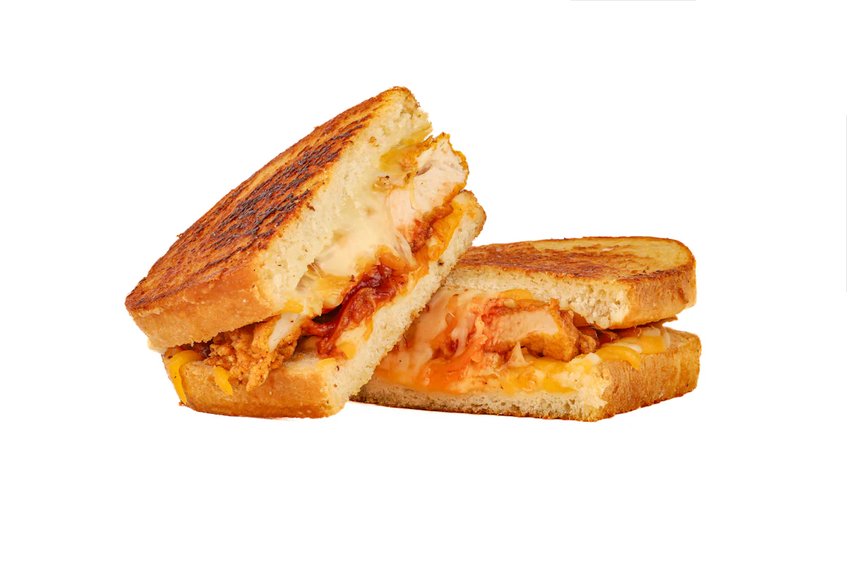 Crispy Chicken Grilled Cheese, Side and Drink.