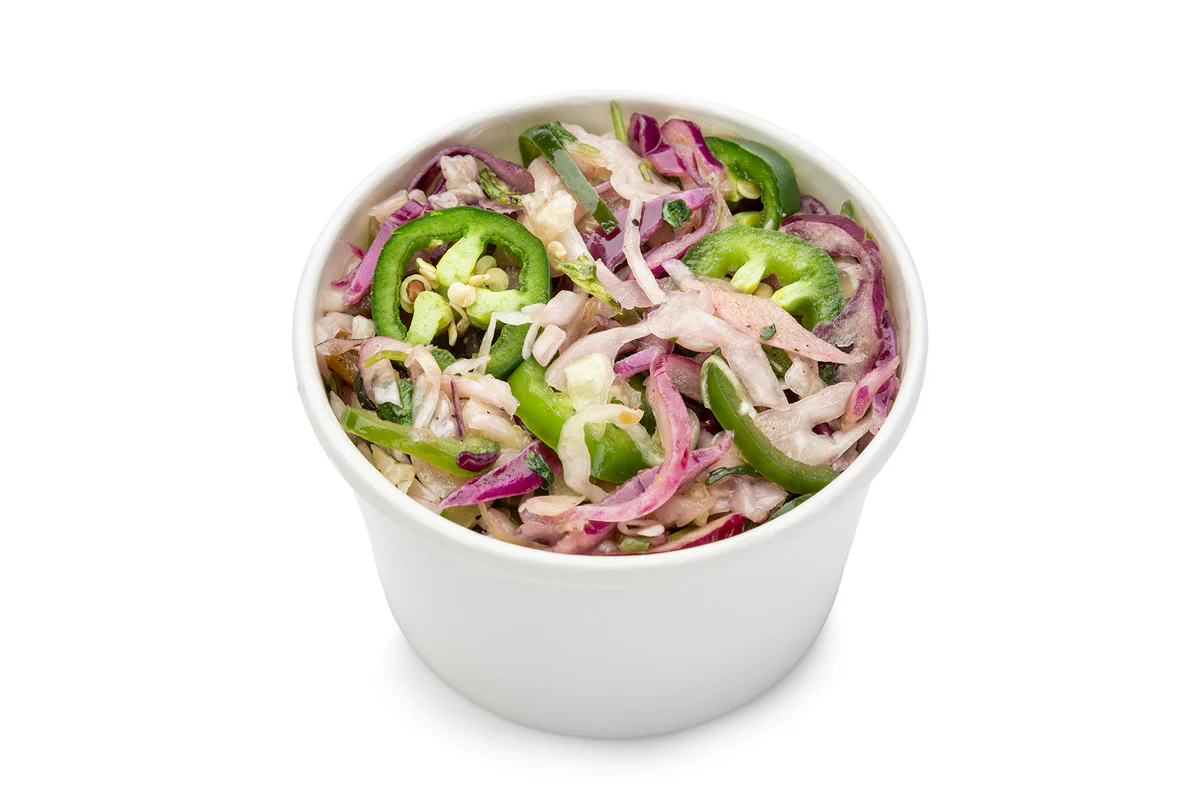 Fresh sliced cabbage tossed in a chipotle vinaigrette with fresh cilantro, red onions, fresh and pickled jalapeños.