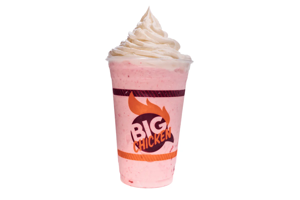 Vanilla ice cream blended with Strawberry puree and topped with whipped cream.