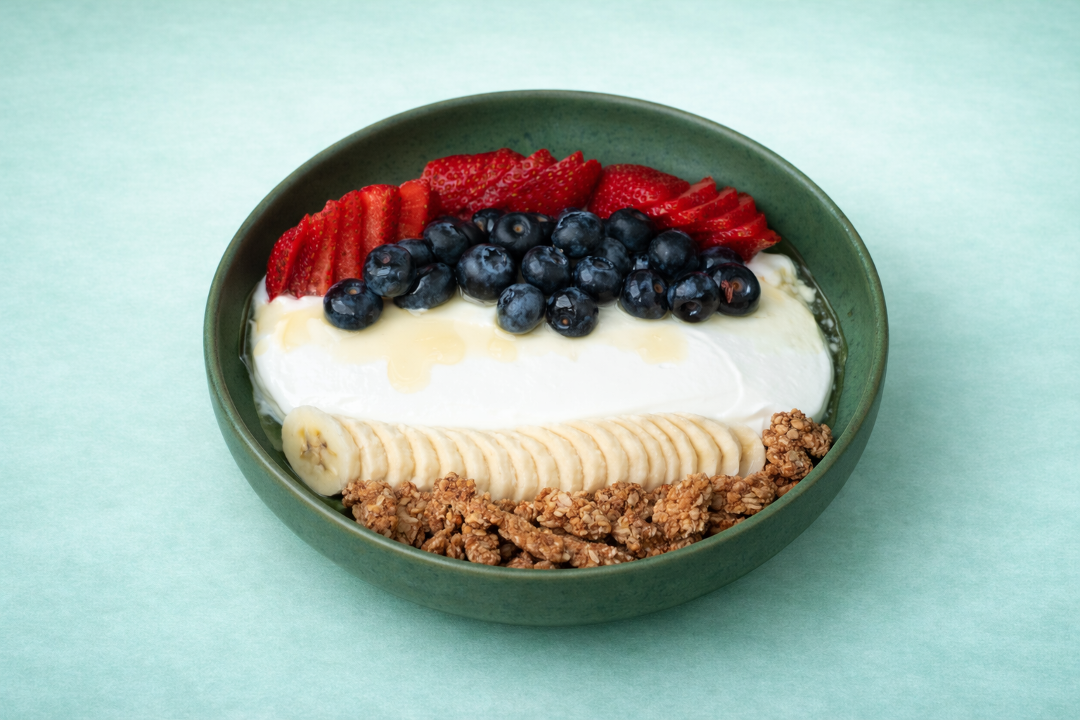 Mango, yogurt, coconut milk, honey, agave, chia seeds, coconut flakes & citrus