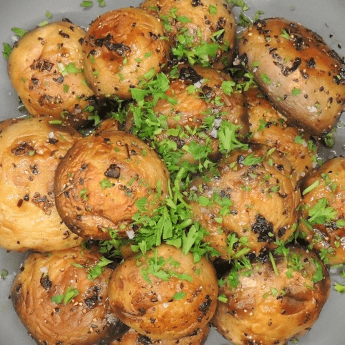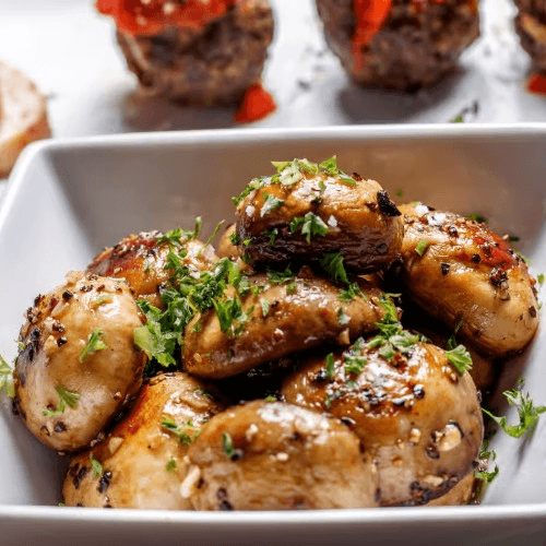 Vegan. Local. 16 oz. Local. Sautéed white mushroom caps, black peppercorn & citrus extract