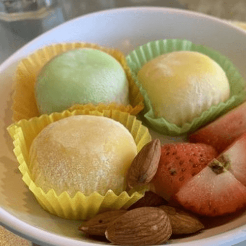 12pc. Vegan. Rice and wheat flour buns stuffed with seasonal leafy greens. Topped with plum sauce drizzle and fresh parsley.
