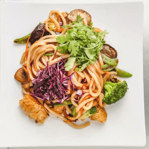 Spicy. Egg, tofu, pickled turnips, bean sprouts & rice noodles in homemade tamarind sauce. Choice of Jumbo Gulf Shrimp, Free-range Chicken or Stir-fry Shiitake Mushroom