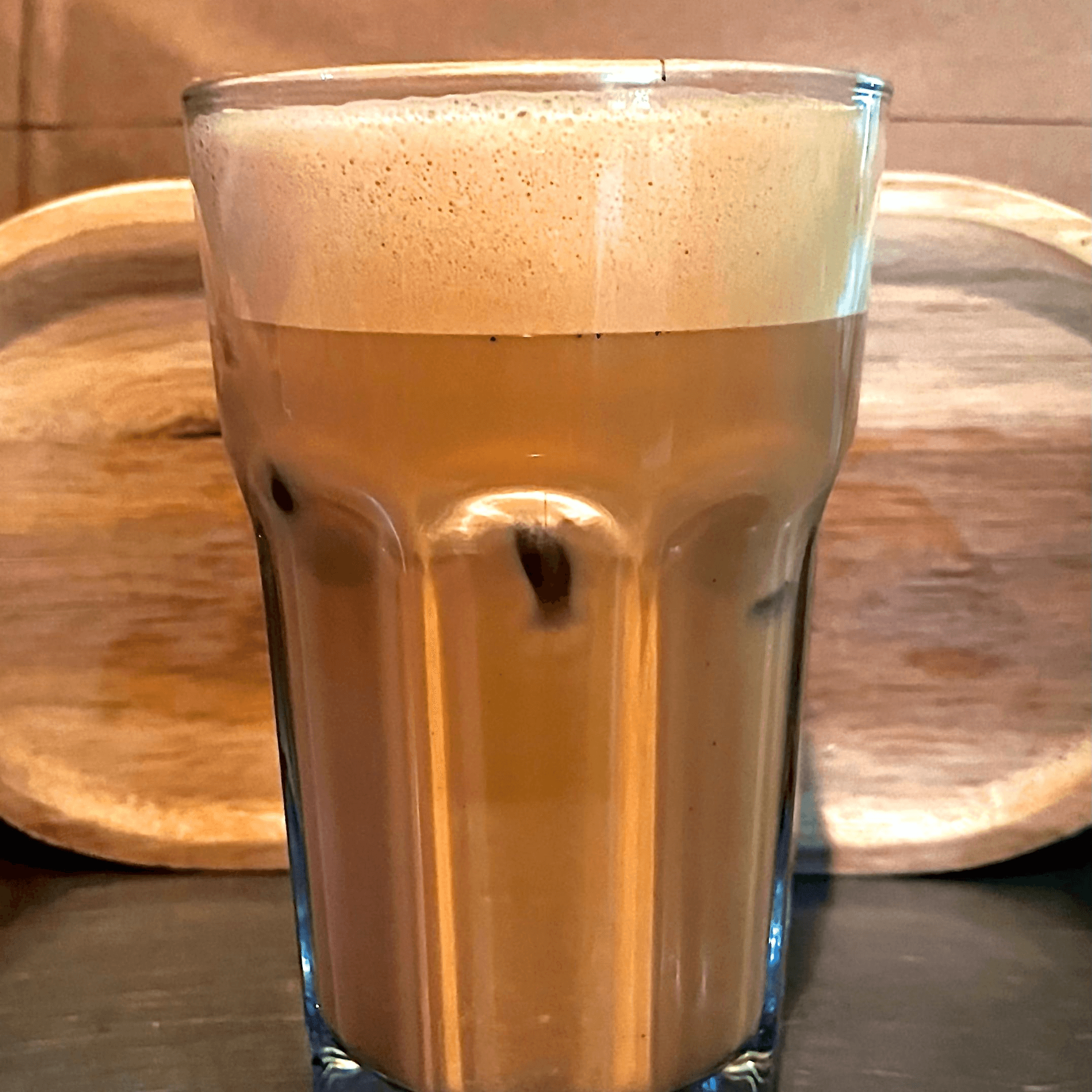 Caribbean coconut eggnog. Raw egg yolk, condensed milk, dairy milk & cinnamon. Over ice.