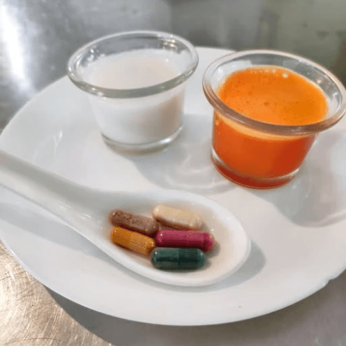 Vegan. Give your body a full array of nutrients, antioxidants & a break from digestion. To be drinked during a whole day. You'll get: Double Apple Juice ( Pineapple, Apple, Mint) Capsulized super foods 5pc (spirulina, turmeric, maca, acai, cacao) Basic Beet juice, Green wash juice, Whole Coconut + Flesh, Wax & Wash Juice, Dehydrated Fiber Cracker 2pc Snooze blend tea.