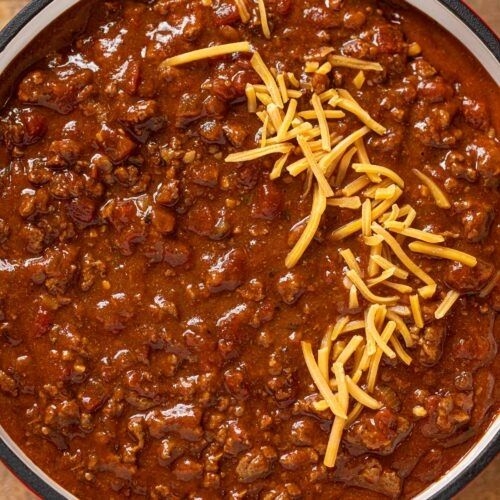 Enchiladas stuffed with ground beef, and then topped off with our Texas Chili sauce.