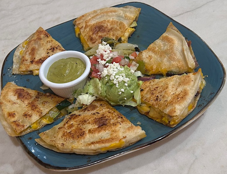 Griddled flour tortilla filled with our house veggie mix of squash, zucchini, and red onions. Simple, savory, and satisfying. Served with a side of our creamy poblano sauce, rajas, and guacamole.