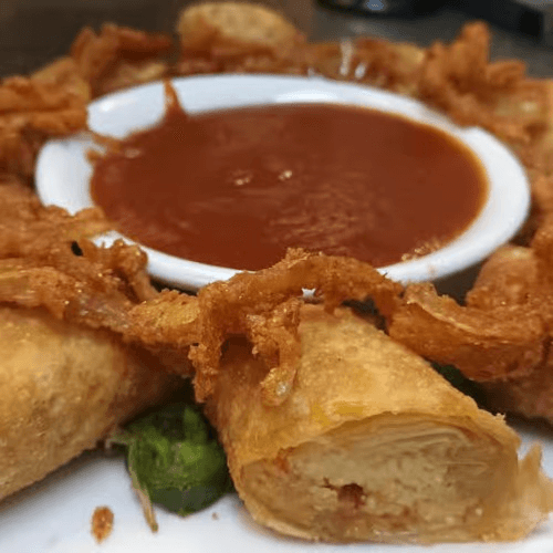 Fried shrimp, lettuce, tomato, house pickles, Cajun remoulade on a French roll with citrus honey slaw & Cajun fried onion rings.