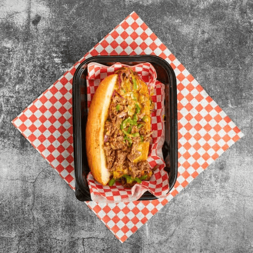 Flat top grilled steak or chicken, peppers, onions, and your choice of cheese whiz or White American cheese