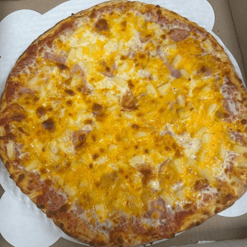 Canadian Bacon, pineapple, and cheddar