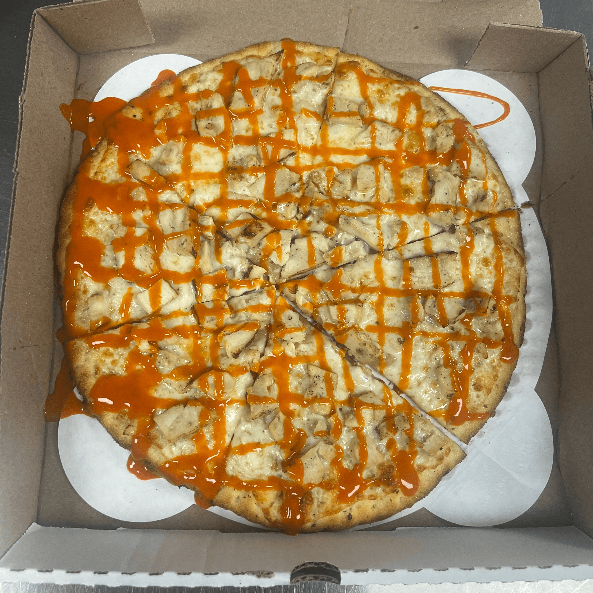 Garlic and ranch base, mozzarella, grilled chicken, buffalo sauce drizzle