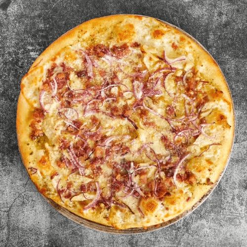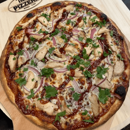 Mozzarella, Pecorino Romano, grilled chicken, bacon, red onion, olive oil