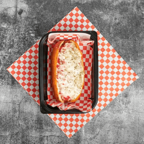 Meatballs, marinara, and mozzarella served on a hoagie roll with a free drink