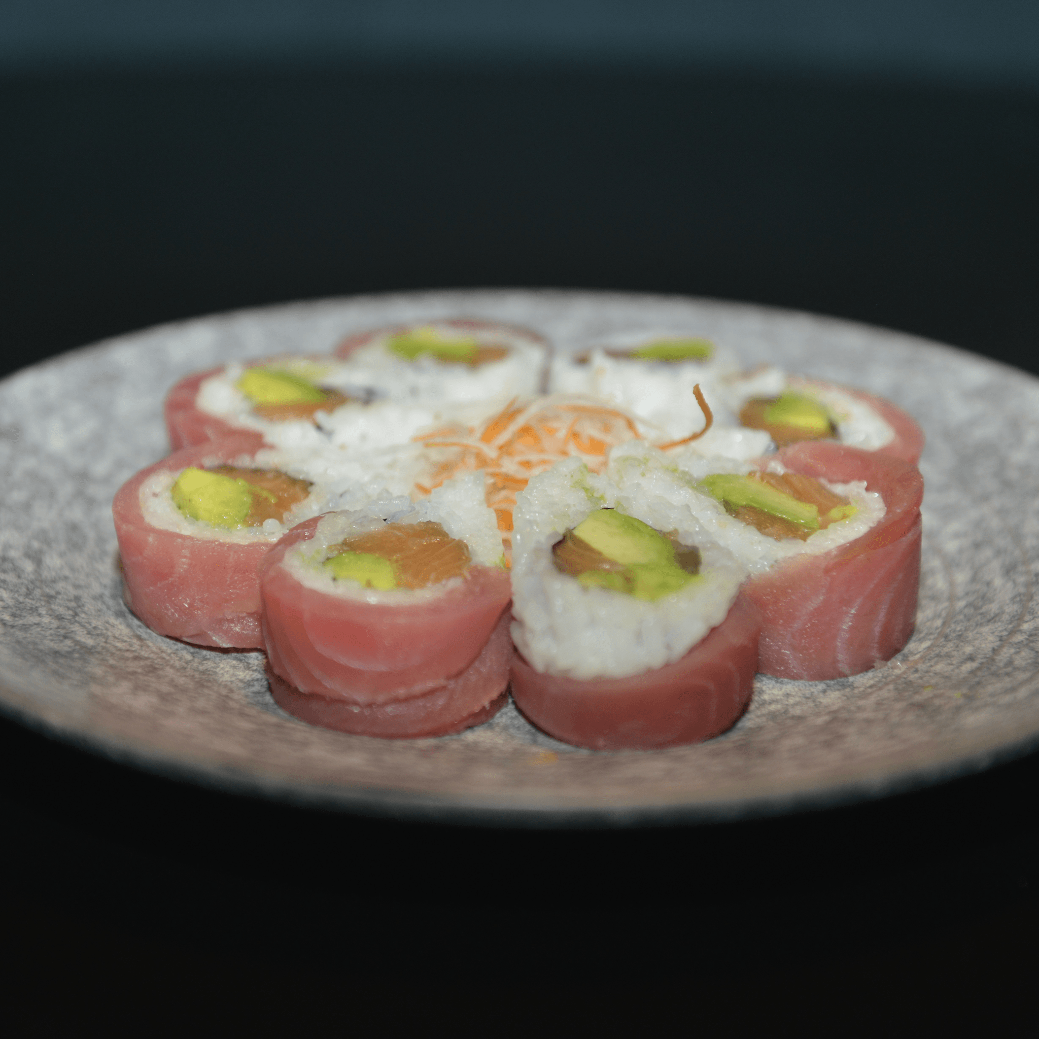 Fresh tuna, salmon, and avocado rolled with sushi rice and seaweed, served with red snapper for a colorful, flavorful finish.