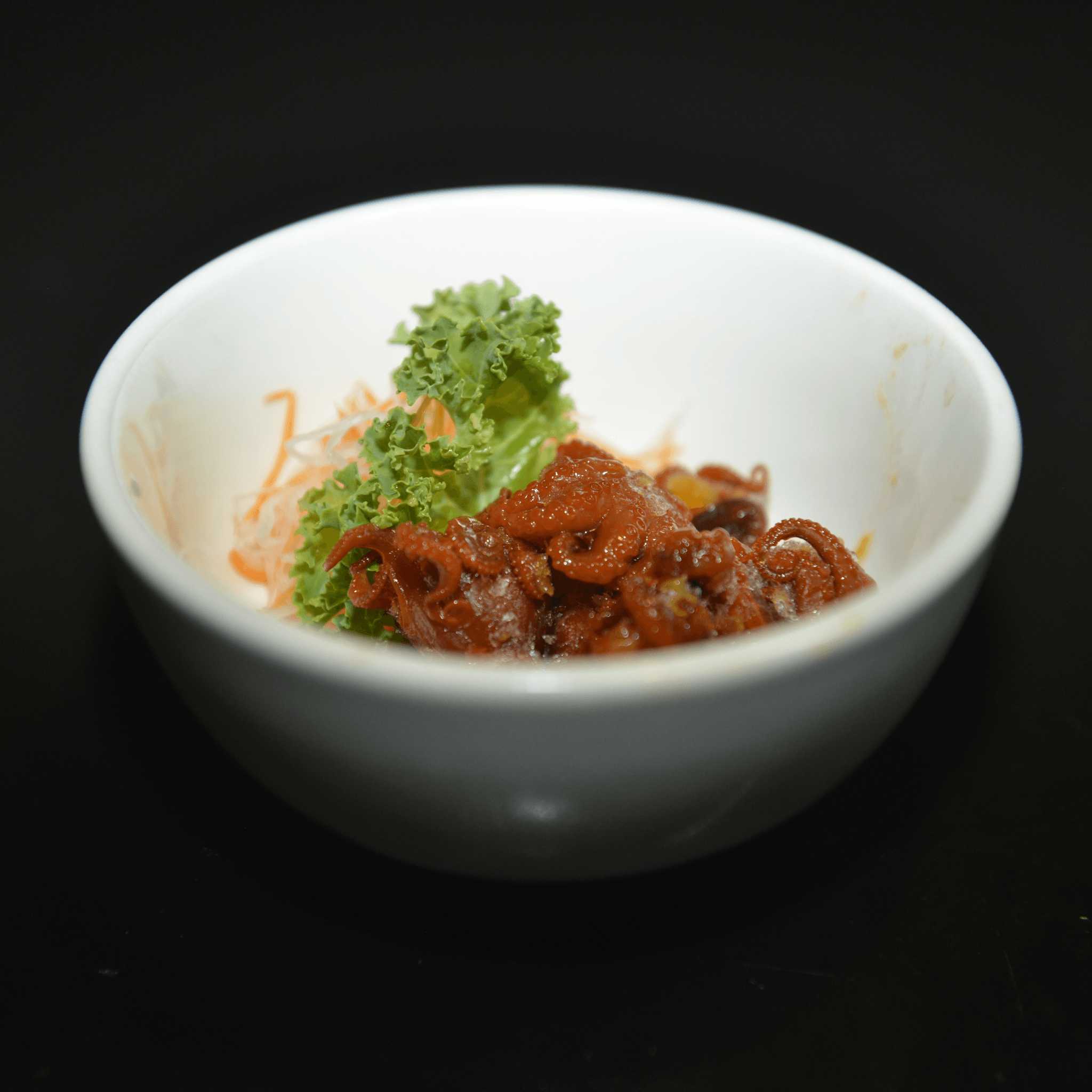 Glazed baby octopus, slow-marinated in Japanese spices, lightly charred for smoky depth, and accented with a hint of yuzu.