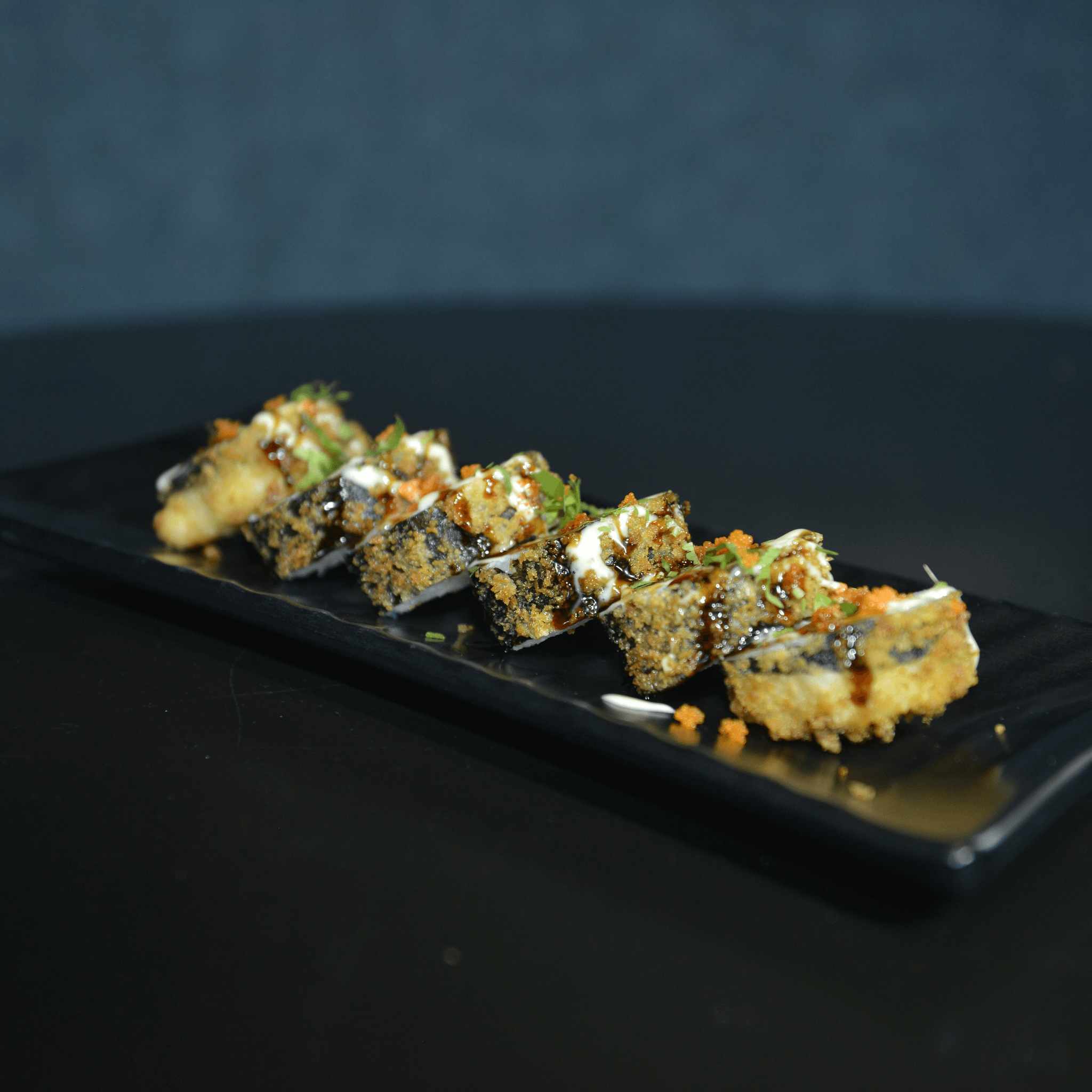Tuna, salmon, red snapper, snow crab. Whole roll deep fried. Served with eel sauce, spicy mayo, sriracha.