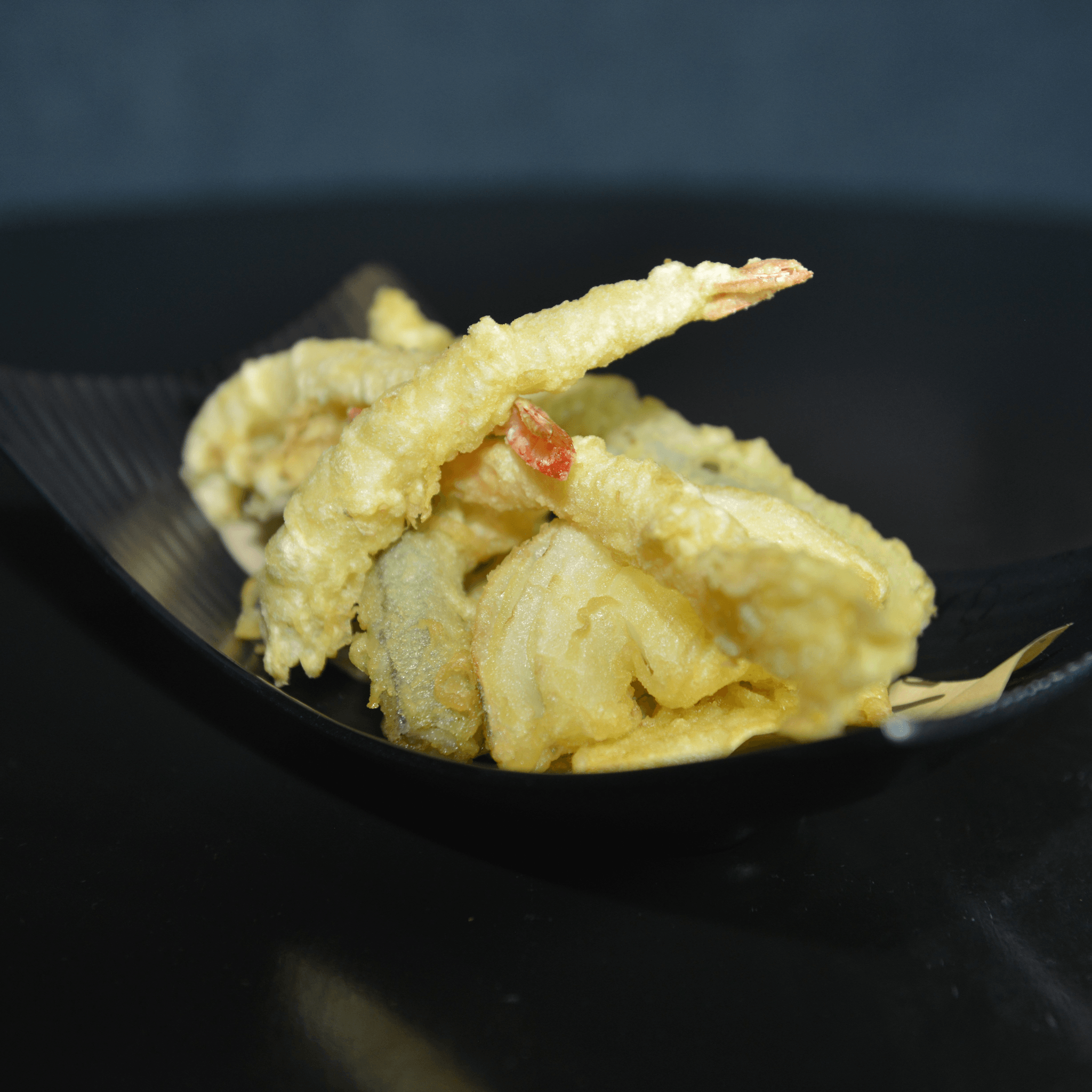 Crispy shrimp and fresh veggies fried in a light Japanese-style tempura batter, served with a tangy dipping sauce.