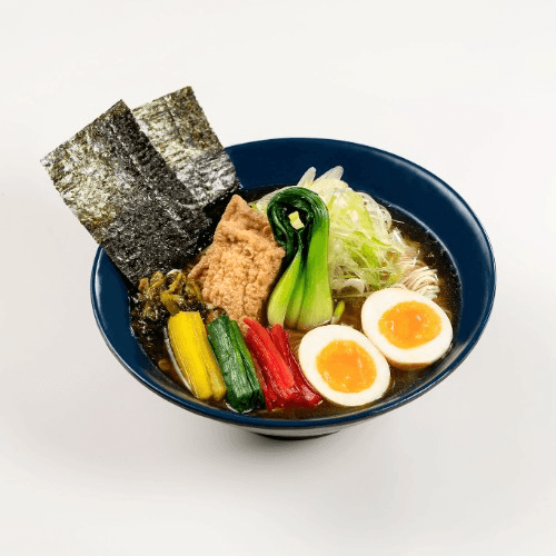 Bok choy, tofu, egg, moyashi sprouts, tokyou scallion, takana pickles, mixed bell peppers, seaweed & nira.