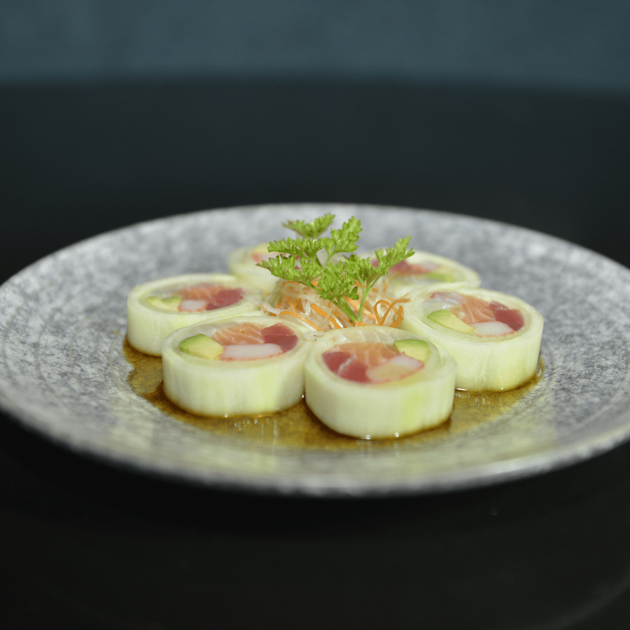 Tuna, salmon, red snapper, avocado, crabstick. Wrapped with cucumber. Served with ponzu sauce.