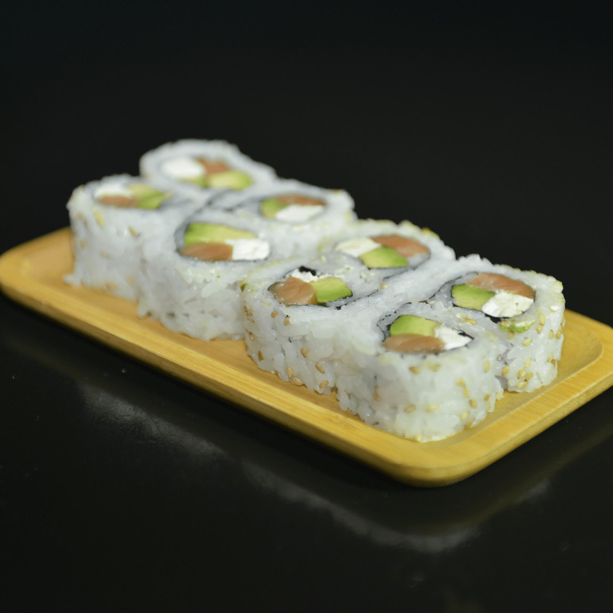 Smoked salmon, cream cheese, and cucumber rolled with sushi rice, a creamy and savory classic.