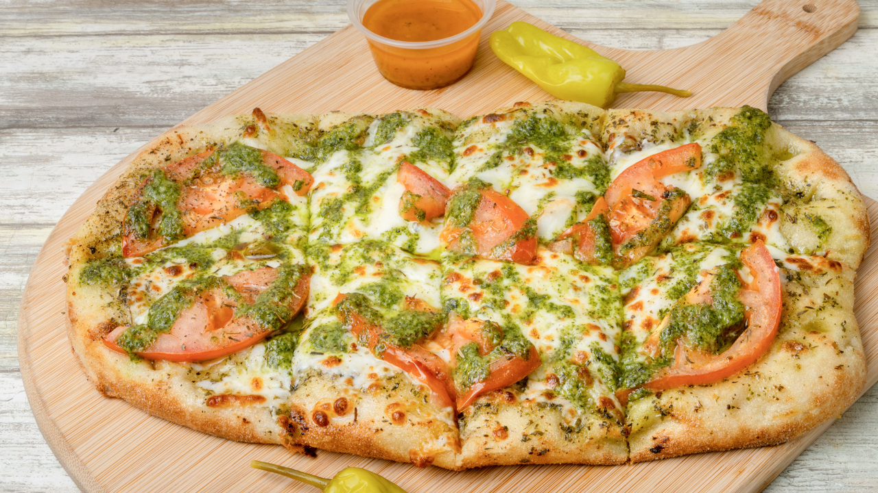MARINARA, FRESH MOZZ, BASIL, PESTO, TOMATO