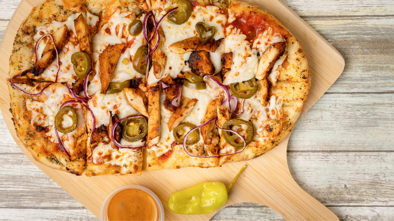 BUFFALO SAUCE, CHEESE, RED ONION, JALAPENO, GRILLED CHICKEN