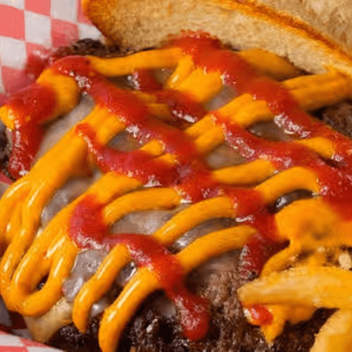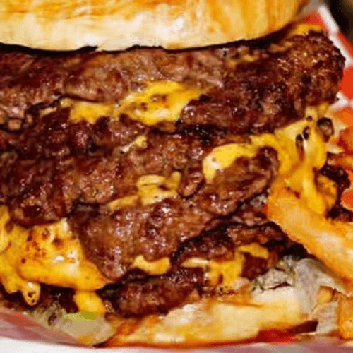 (Calories don't count on days that end in "Y") Three steakburger patties, grilled pastrami, Pepper Jack cheese, American cheese, ghost pepper cheese, Swiss cheese, grilled onions, and Matty G's fry sauce served on Texas toast (no additions)