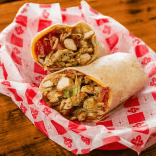 Grilled chicken, applewood smoked bacon, lettuce, American cheese, diced tomato, BBQ sauce in flour tortilla