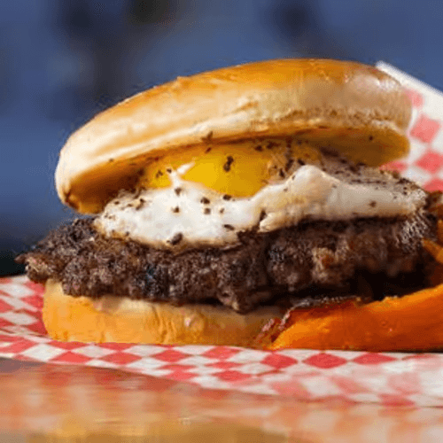 Two steakburger patties, Matty G's fry sauce, applewood smoked bacon, and a fried egg
