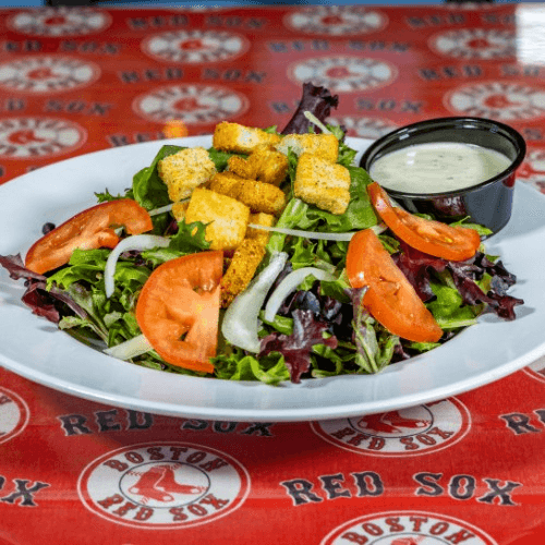 Spring mix with tomatoes, onions, and croutons. Choice of Caesar, ranch, or creamy Italian dressing. Add grilled chicken breast for an extra charge