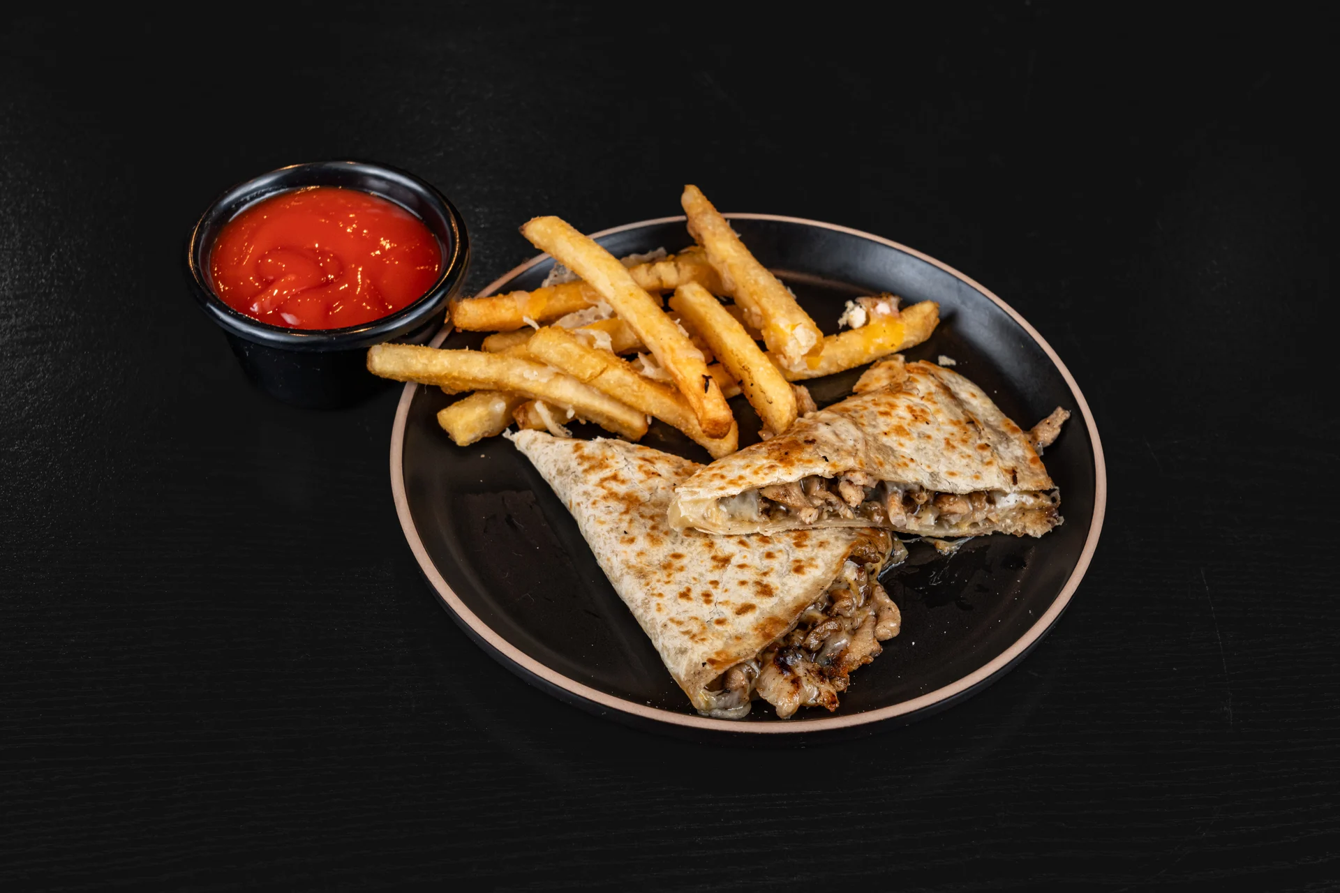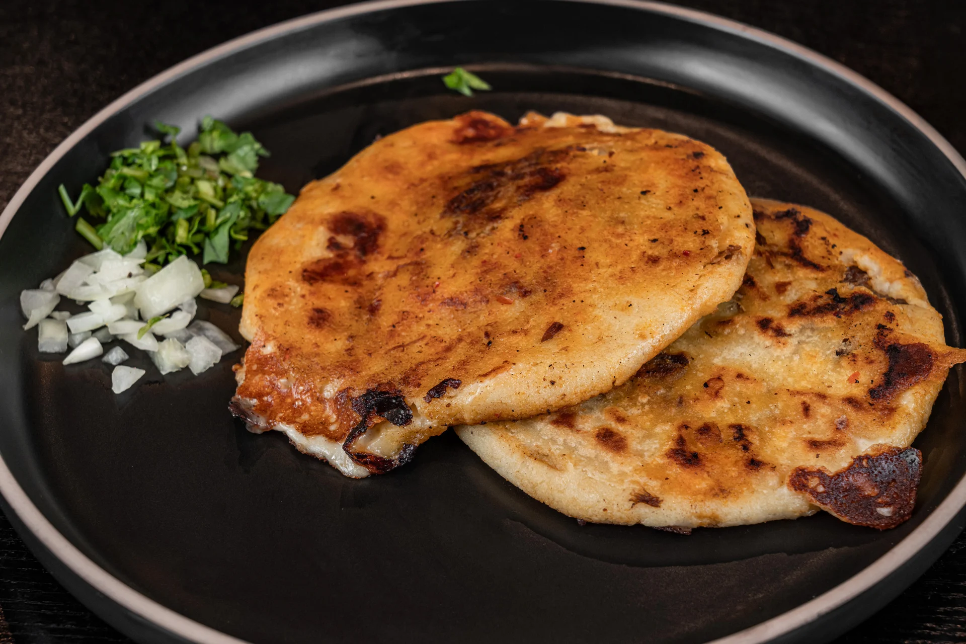 A beloved Honduran favorite - a warm, soft flour tortilla filled with creamy refried beans, fresh cheese, and rich cream, then topped with scrambled eggs and avocado. A hearty and authentic taste of Honduras in every bite.