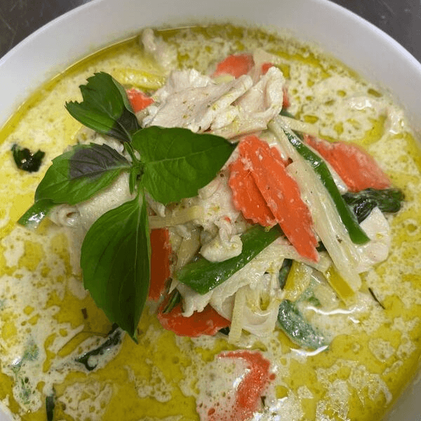 Green curry paste, coconut milk, bamboo, bell peppers, eggplant, kaffir lime leaves and fresh basil leaves. Available Monday to Saturday from 11:00 AM to 3:00 PM.