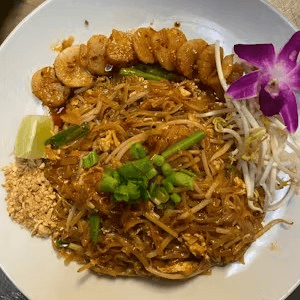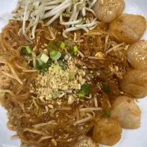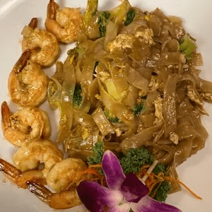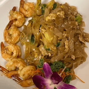 Stir-fry rice noodles with egg, broccoli on thai sweet soy sauce. Available Monday to Saturday from 11:00 AM to 3:00 PM.