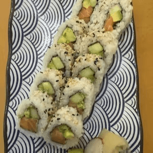 Salmon, cucumber, avocado and sesame seeds. 🐟 Served raw