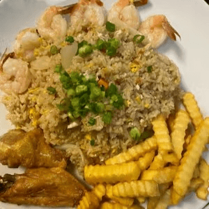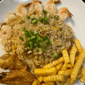 Stir fried rice, egg, Chinese broccoli, tomatoes, onions, and scallions. Available Monday to Saturday from 11:00 AM to 3:00 PM.