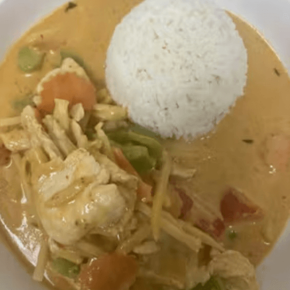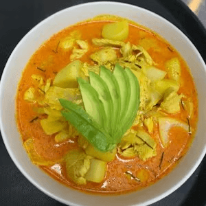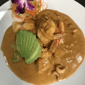Masaman curry paste, coconut milk, avocado, onions, potatoes, and cashew nuts. Served with jasmine rice or brown rice
