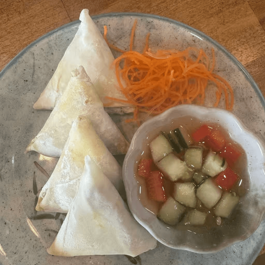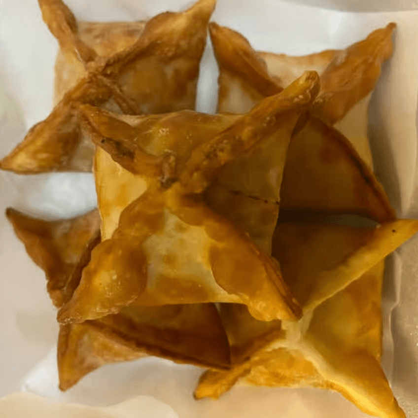 4 wonton wrappers stuffed with imitation krab, cream cheese and deep fried