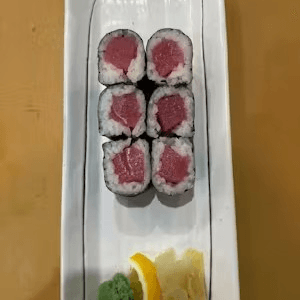 9 pieces of sashimi, 6 pieces of sushi and tuna roll. Served raw. Served with clear soup, miso soup, or ginger salad