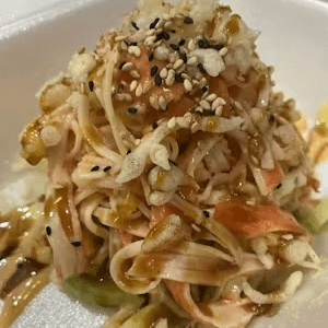 Stir-fried glass noodles, egg, fresh garlic, with vegetables in a light brown sauce. Available Monday to Saturday from 11:00 AM to 3:00 PM.