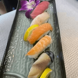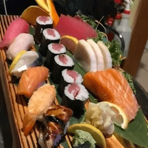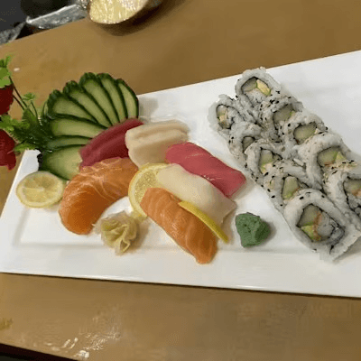Served raw. 6 pieces of sashimi, 3 pieces of sushi, and California roll. Available Monday to Saturday from 11:00 AM to 3:00 PM.