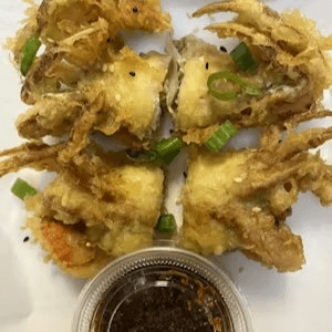 Soft shell crab cooked tempura style, served with ponzu sauce & scallions