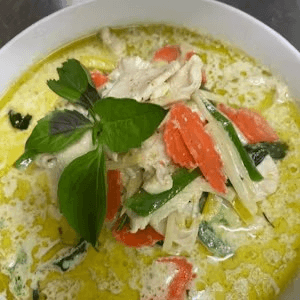 Panang curry paste, coconut milk, kaffir lime leaves, peanuts, bamboo, bell peppers. Available Monday to Saturday from 11:00 AM to 3:00 PM.