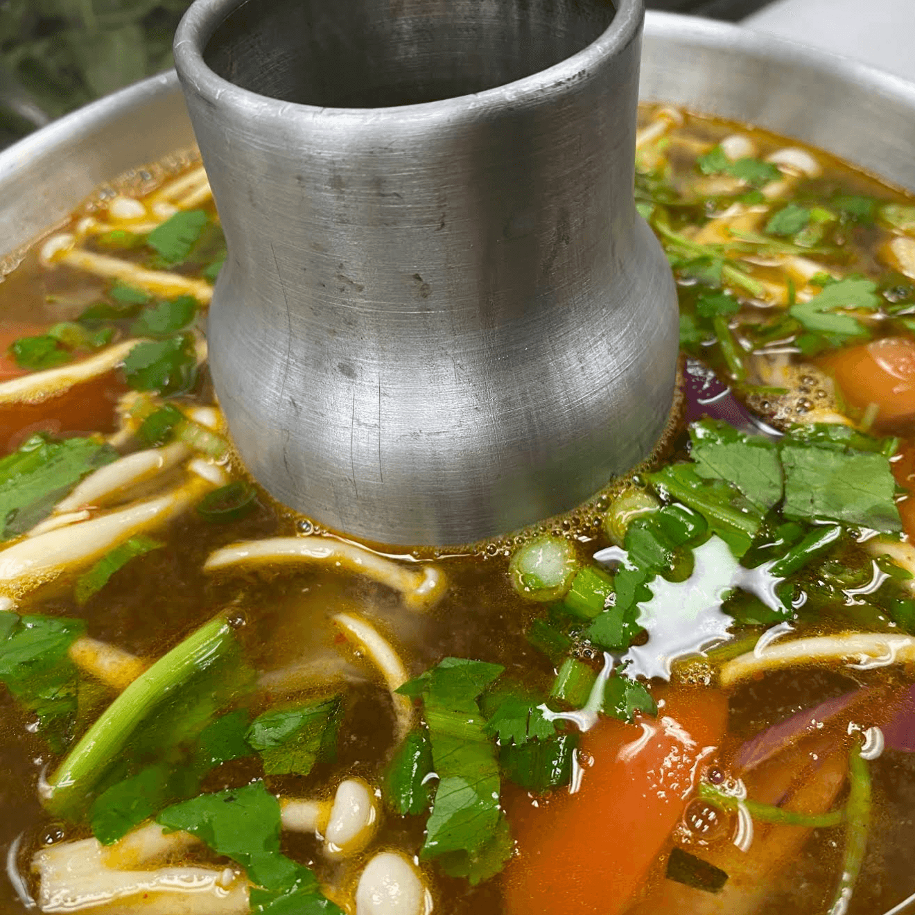 Lemon grass, mushroom, herb, spices, in a sour broth