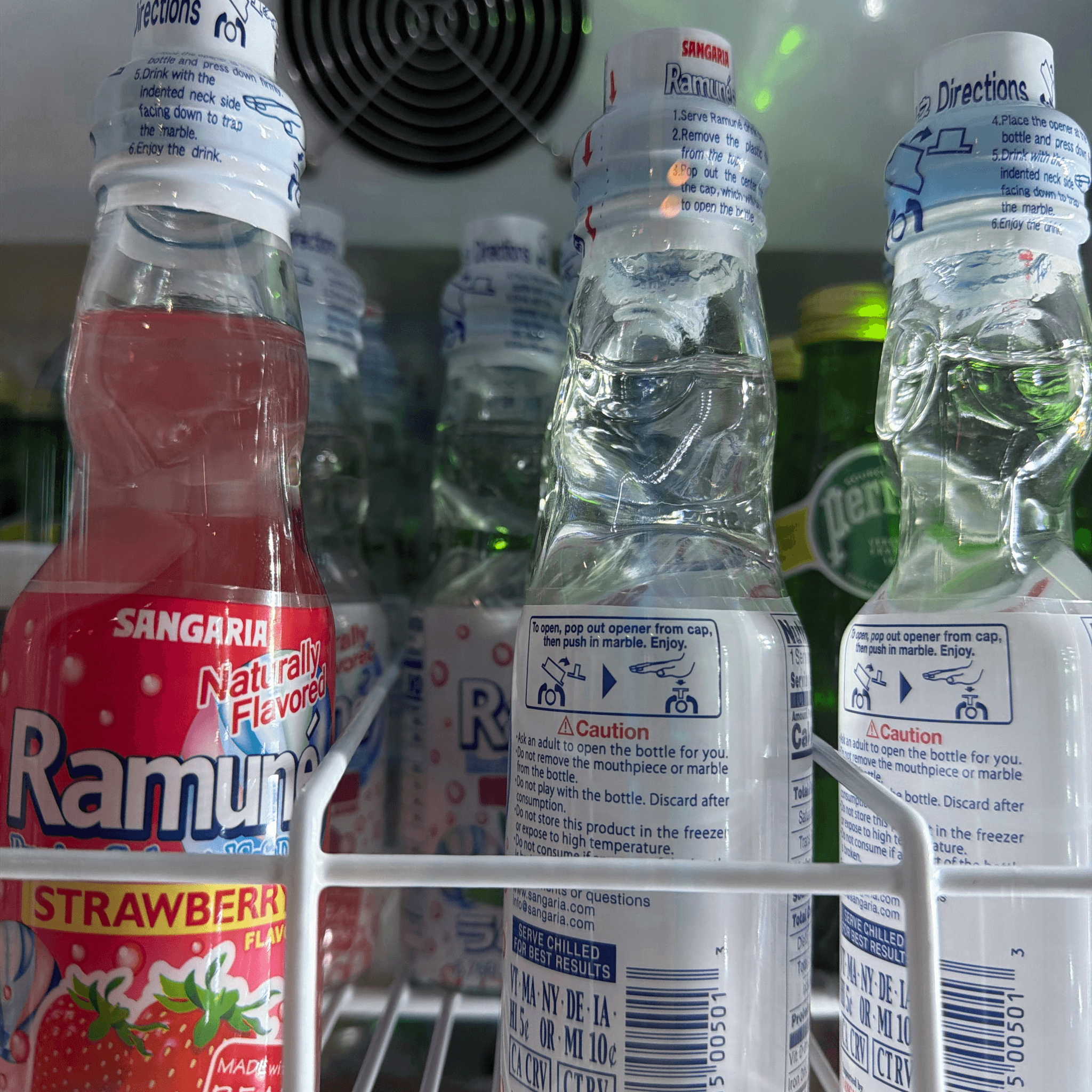 Egg noodles, mushroom, bean sprouts, dry seaweed, scallions, seasoned egg, fish cake, sweet corn and sesame oil in a creamy pork broth