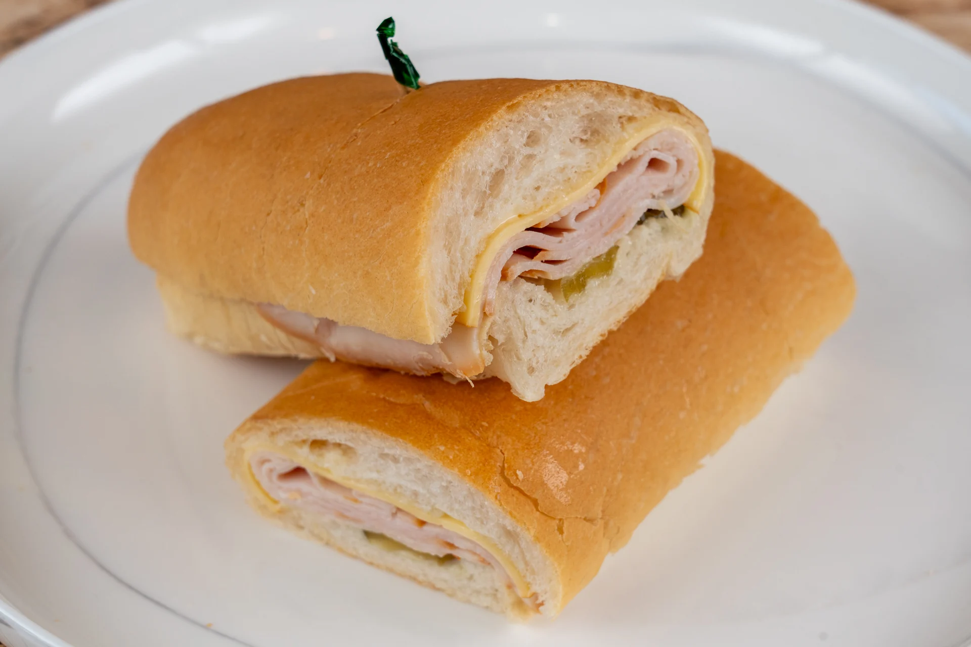 Oven-roasted turkey, smoked Swiss, Gouda, sweet pickles, and mayo.