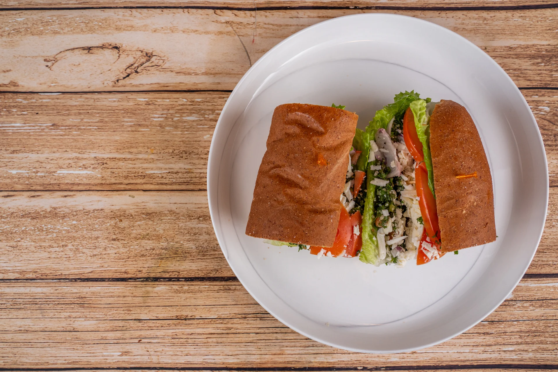 Mixed greens topped with a scoop of tuna salad, cucumbers, cherry tomatoes, celery, Kalamata olives, and pepperoncini. Served with house dressing